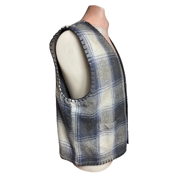 This salvaged vintage wool check vest is stitched with raw attitude and reworked with a bold AF Amsterdam bulldog patch — street-bred, club-coded, and ready to bite.