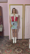 ‘Crimplene’ is a vintage shirt-style designed with a custom crop-cut, creating a sleeveless silhouette.